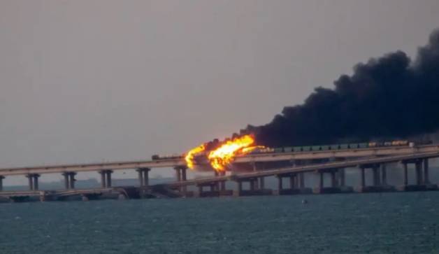 据多家俄媒报道,当地时间8日清晨,在横跨刻赤海峡的克里米亚大桥铁路上,一节装有燃料的火车油罐车厢起火,多节货运车厢受损。