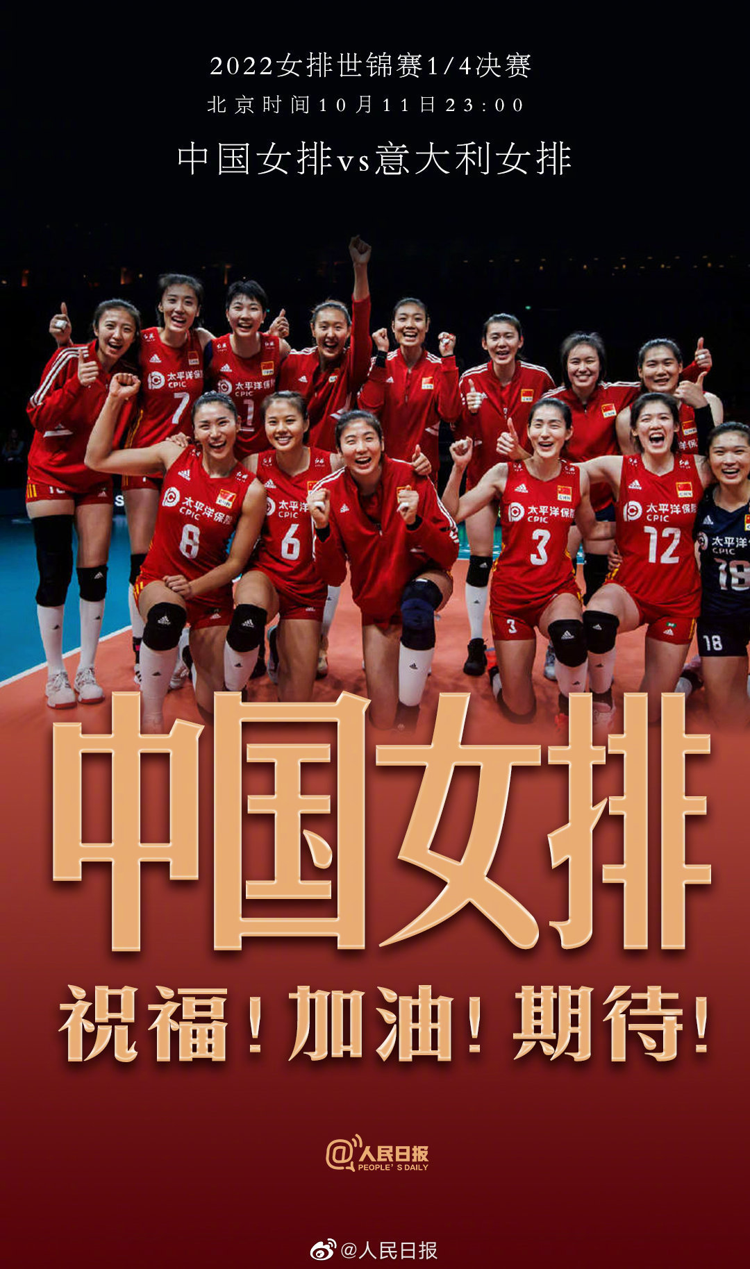 北京时间今晚23:00,中国女排将在2022年女排世锦赛1/4决赛中再次迎战意大利女排。敢拼敢赢,中国女排加油!