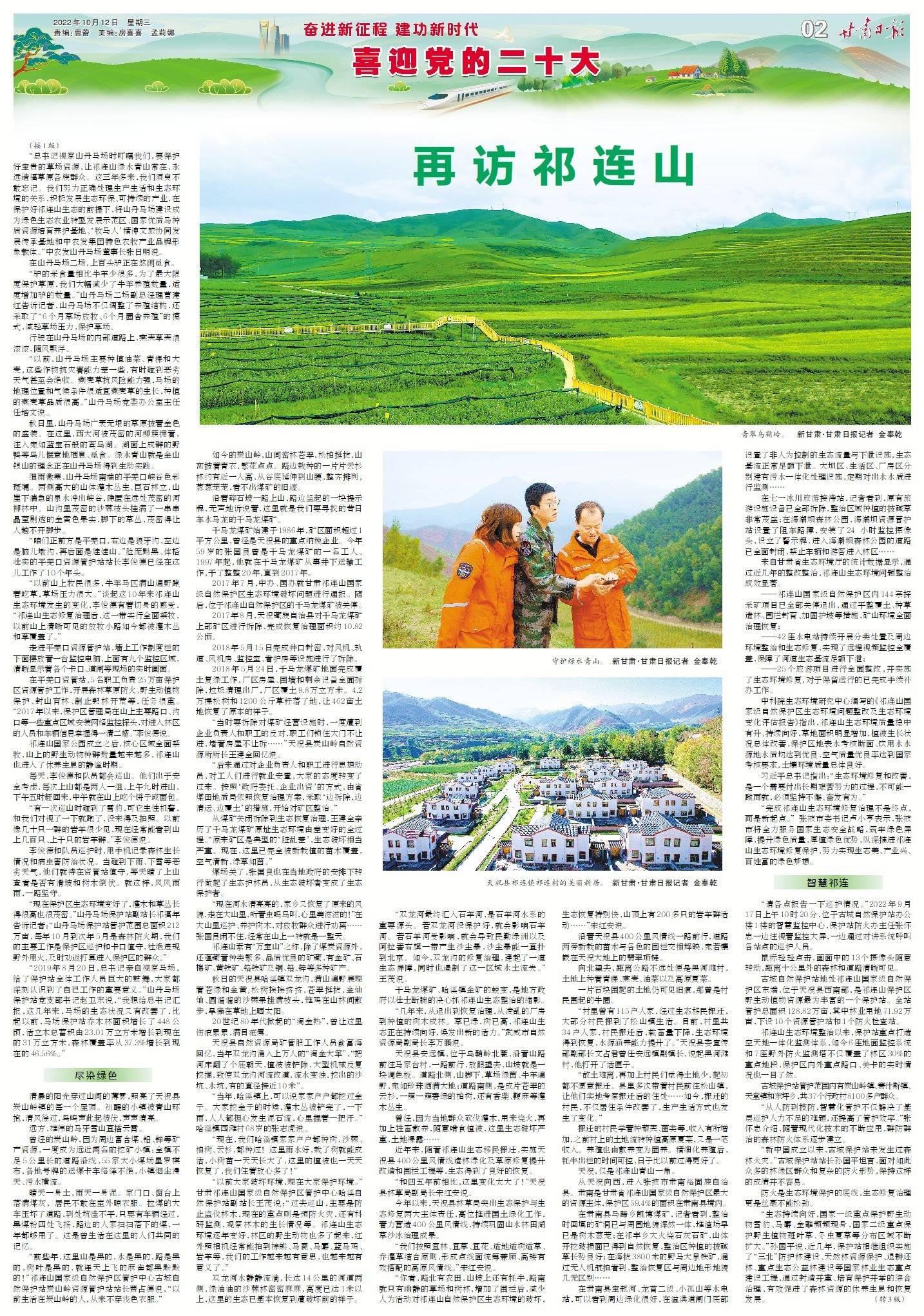金秋九月,甘肃日报记者再度深入祁连山腹地。从“河西门户”乌鞘岭,到骏马奔腾的山丹马场;从崇山峻岭深处的保护站,到如梦如幻的丹霞地貌,我们深切地感受到:近年来,在习近平生态文明思想的指引下,甘肃干部群众积极践行绿水青山就是金山银山理念,在不断推进生态文明的进程中,一个个“绿色梦想”正幻化为现实,满目苍翠的大美祁连山一步步回归到了世人面前。