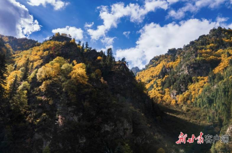 天祝县石门沟桦树、云杉、柏树及众多灌木在秋日里五颜六色,美丽如画。新甘肃·甘肃日报通讯员 王守辉