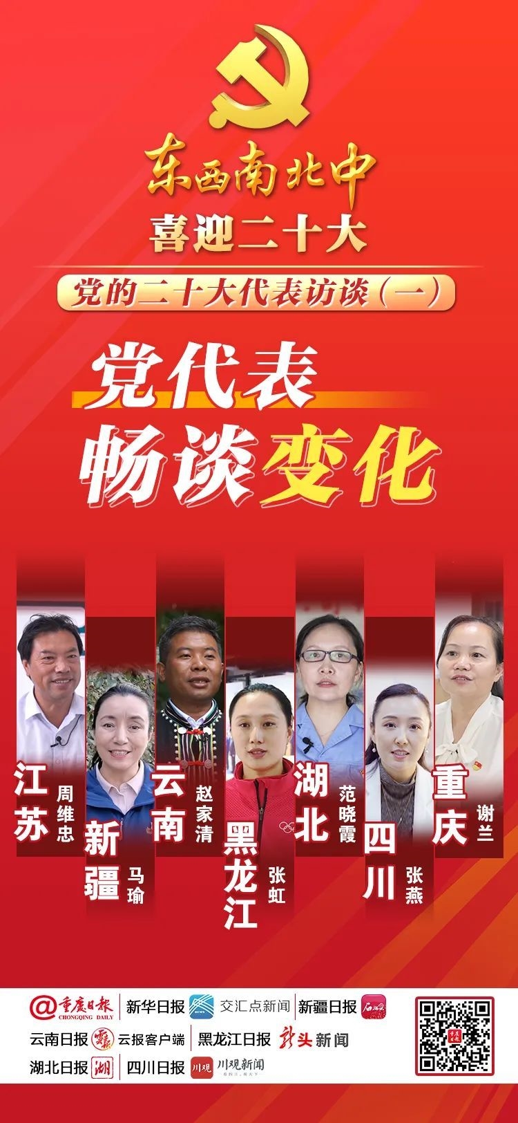 该系列访谈以“东西南北中•喜迎二十大”为主题,邀请来自江苏、新疆、云南、黑龙江、湖北、四川、重庆七地的与会基层代表畅谈变化、共话参会、寄望未来。