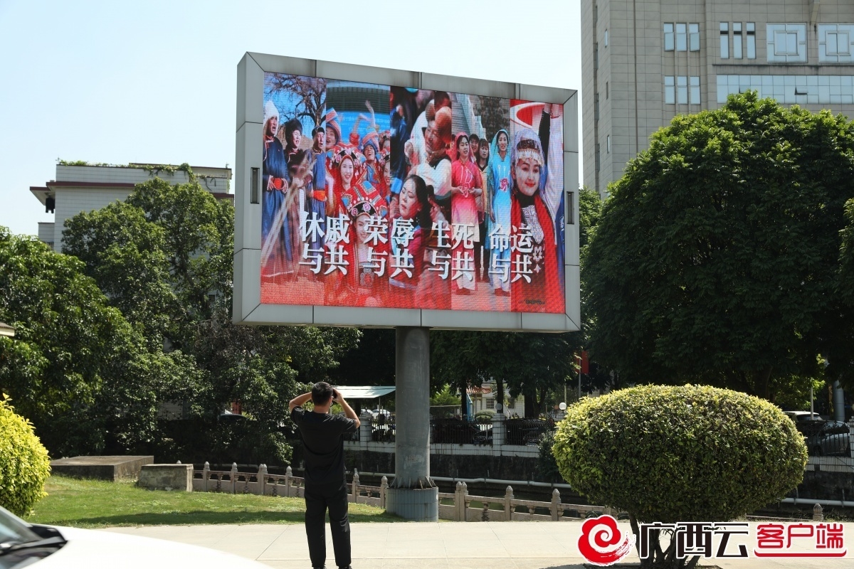 《各民族 心向党》短视频在柳州市柳江区中心广场大屏幕上播放。