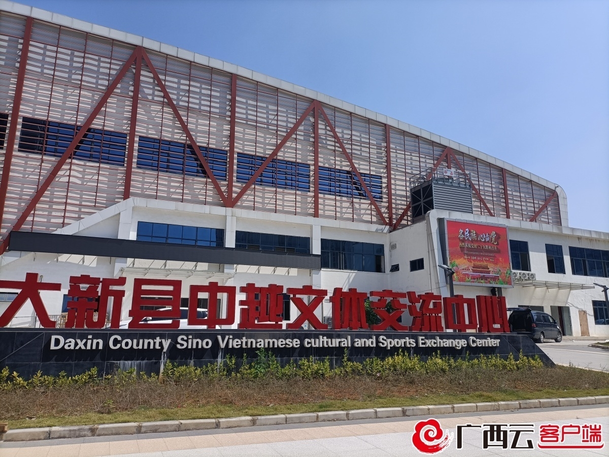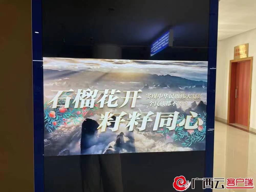 《各民族 心向党》短视频在崇左市大新县中越文体交流中心大屏幕上播放。