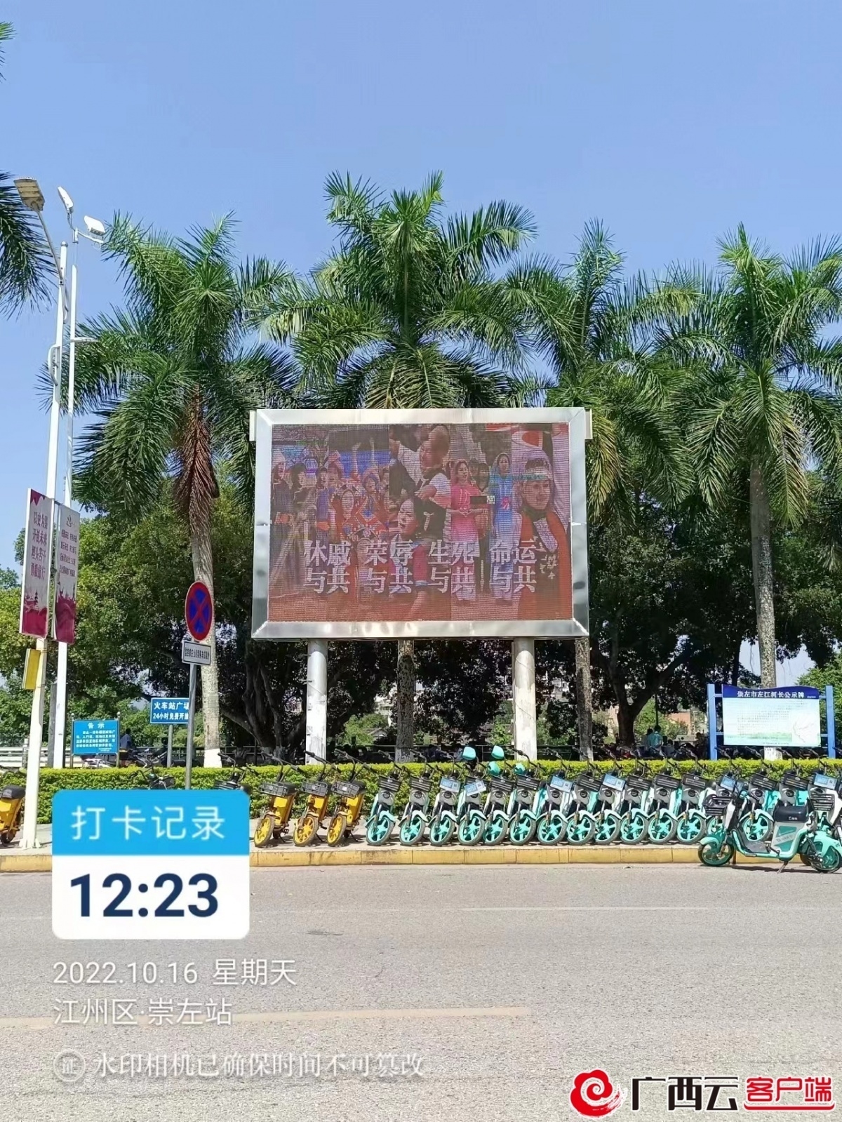 《各民族 心向党》短视频在崇左市江州区火车站LED显示屏上播放。