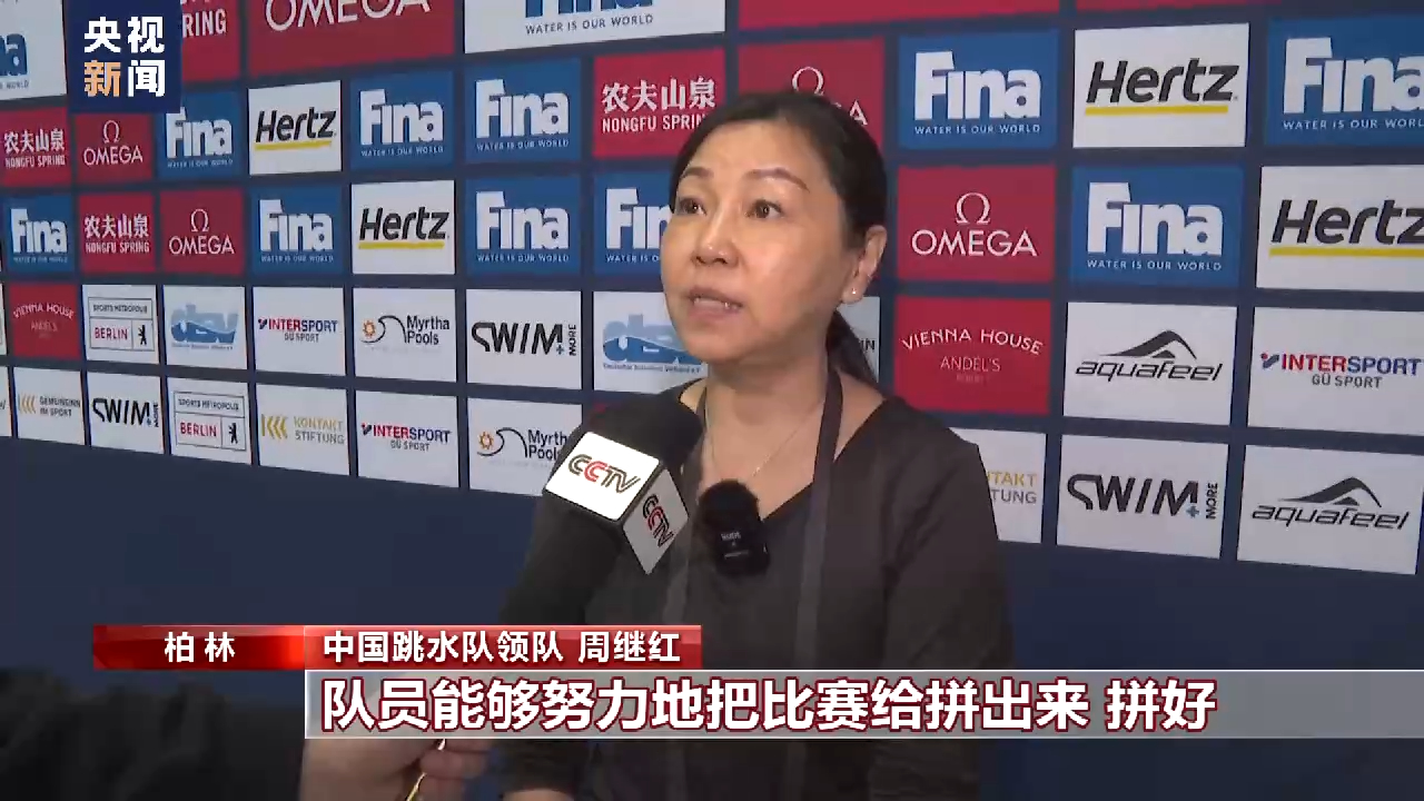 中国跳水队领队 周继红:应该来讲,从8个项目的表现来看,大家都在尽最大的努力。应该说跳出了一些平时比较正常的动作,尤其到了这边之后,有时差,赛前训练只有两天,在这样的情况下,队员能够努力地把比赛给拼出来、拼好,还是值得点赞的。