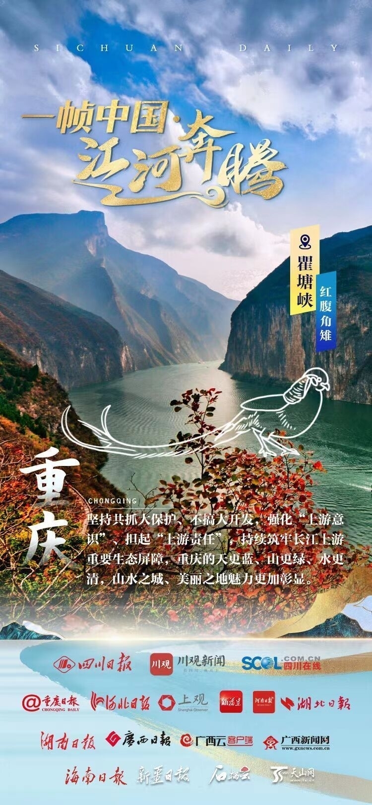 国庆假期,四川日报全媒体策划“一帧中国·江河奔腾”党媒联动,携手河北日报、解放日报、福建日报、河南日报、湖北日报、湖南日报、广西日报、海南日报、重庆日报、新疆日报等媒体,带领网友打卡了全国十余省市区,解锁了长江鲟、红腹角雉、金丝猴等超多“萌宝”……