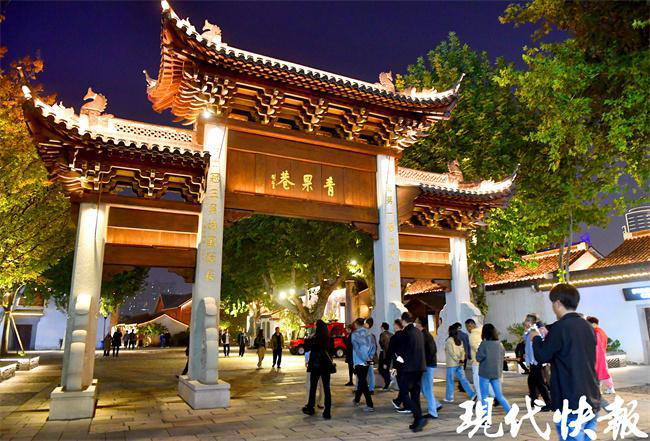华灯初上,繁华闹市。夜间的青果巷,不仅氤氲着 " 江南名士第一巷 " 的书卷气息,还流转着 " 人间烟火 " 的悠闲与繁华。