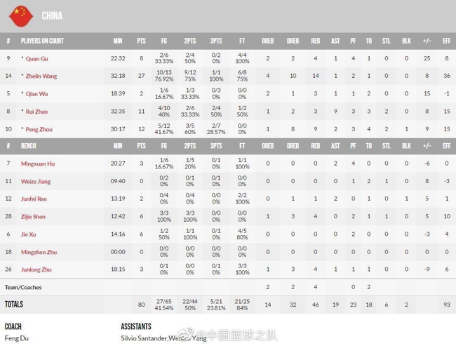 本场比赛中,中国男篮半场以34-32领先巴林男篮进入下半场较量,双方常规时间内战平进入加时赛。最终,王哲林斩获27分14篮板,周鹏拿到12分9篮板,赵睿也拿出了11分9助攻的表现。
