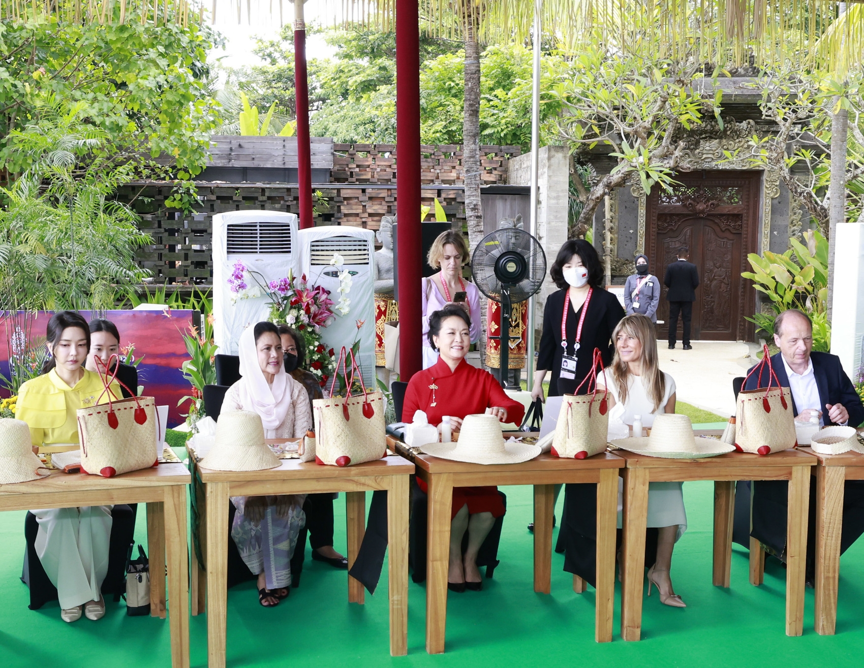 新华社印度尼西亚巴厘岛11月15日电 当地时间15日上午,国家主席习近平夫人彭丽媛在巴厘岛出席印度尼西亚总统夫人伊莉亚娜组织的二十国集团领导人第十七次峰会领导人配偶活动。