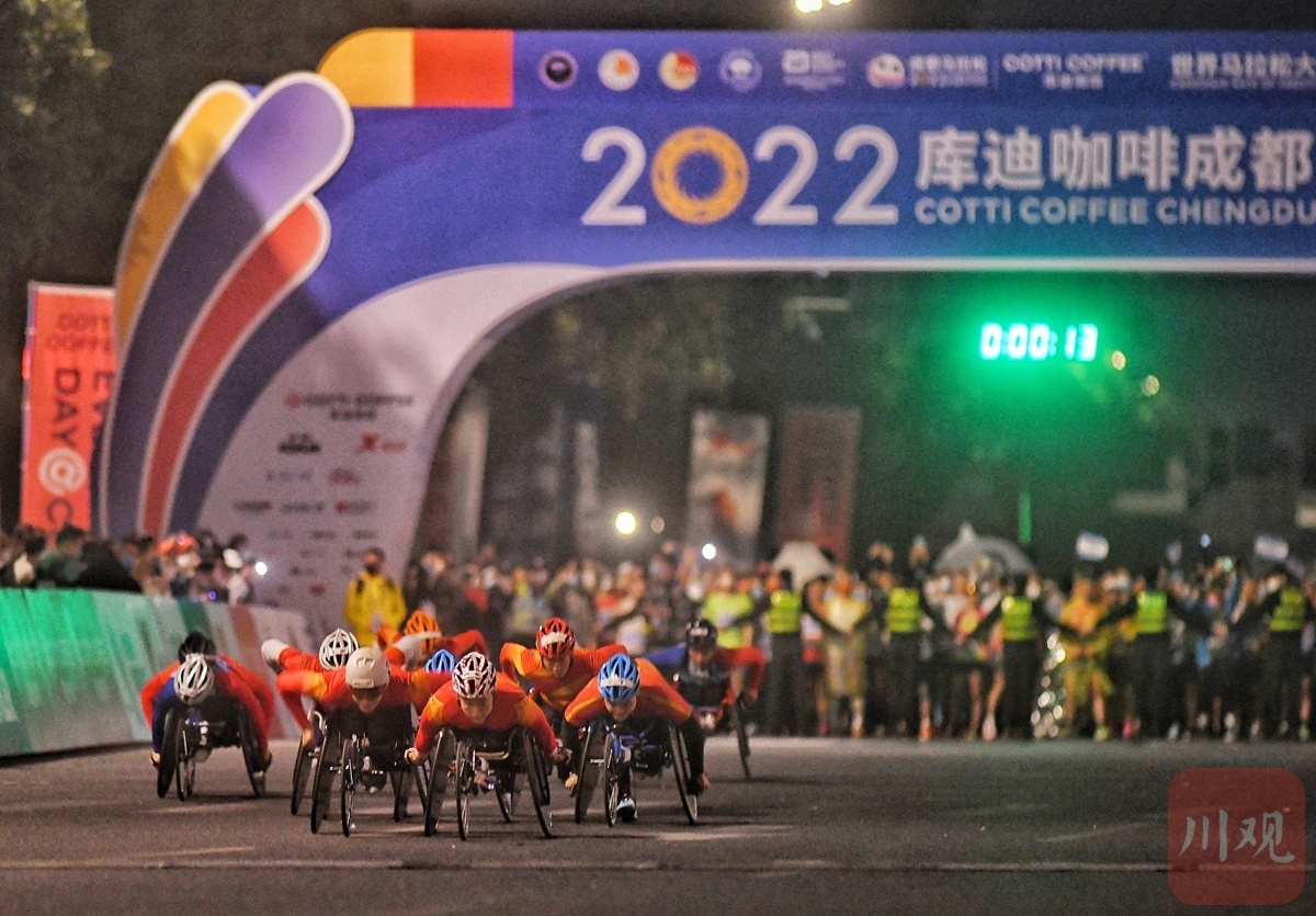2022成都马拉松11月20日7:30鸣枪开跑,在此之前,由中国竞速轮椅国家队参加的竞速轮椅项目率先出发。刚刚,2022成都马拉松竞速轮椅马拉松项目结束。