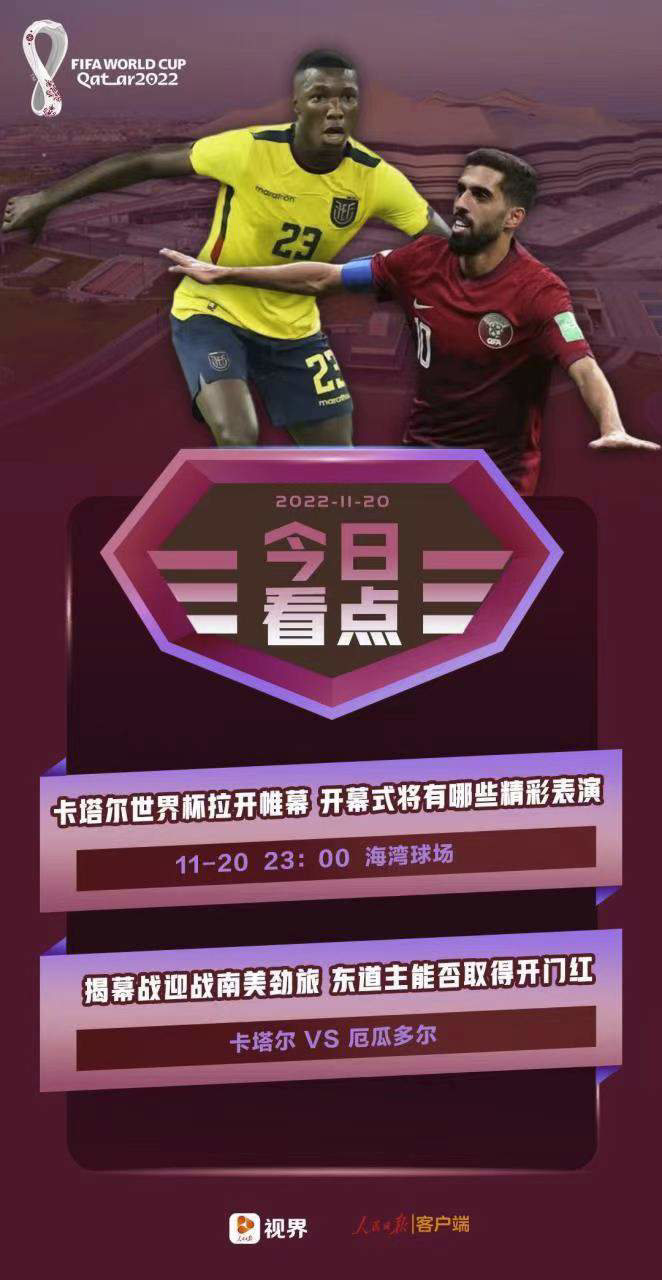 2022年卡塔尔世界杯开幕式将于北京时间11月20日23时在多哈海湾球场举行。