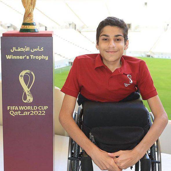 这位残障人士名字叫加尼姆·阿尔·穆夫塔,出生于卡塔尔,是今年世界杯大使之一,年仅20岁。他出生时身患一种罕见的疾病,尾部回归综合征。这种疾病会导致患者出生时没有下半身,加尼姆·阿尔·穆夫塔就是这样。但和别人不同的是,在父母不懈的帮助下,加尼姆·阿尔·穆夫塔学会了并坚持用手四处走动,因为他认为自己应该利用一切自己所拥有的东西,而不是执拗于自己没有的。