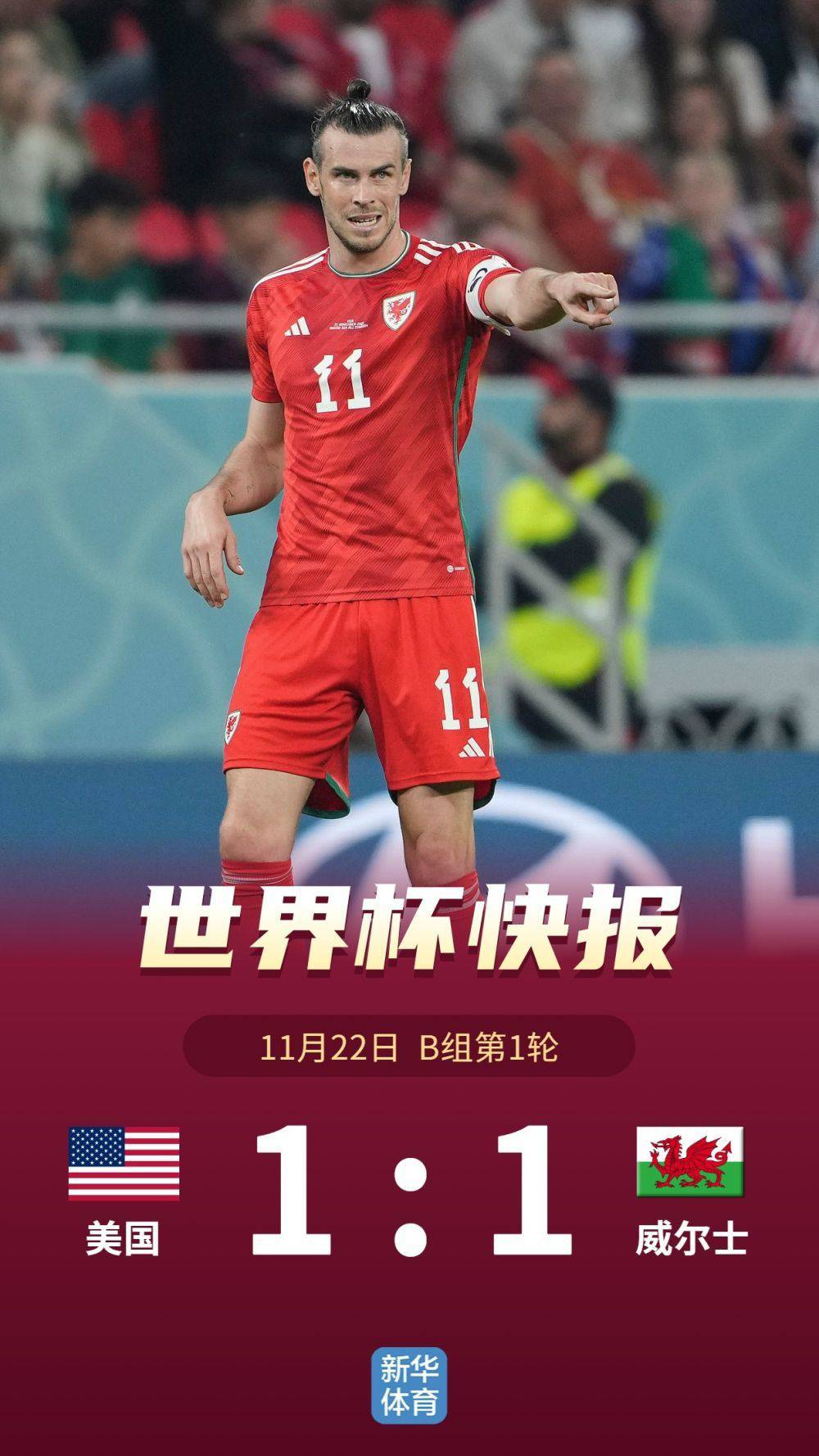 北京时间11月22日,世界杯小组赛B组第1轮,美国对阵威尔士。上半场,普利西奇助攻小维阿破门。美国半场1-0领先威尔士。下半场,贝尔制造点球,并亲自操刀主罚扳平,最终美国1-1战平威尔士。
