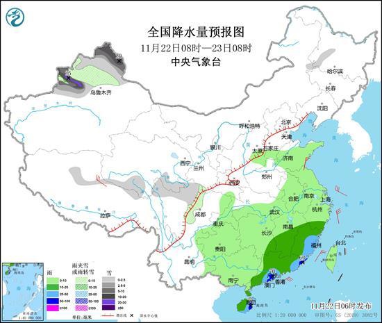 今天(11月22日)迎来小雪节气,降雪主要集中在新疆,局地有大暴雪现身。此外,今天南方大范围阴雨天气仍将在线,其中福建、广东、海南等地部分地区有暴雨。气温方面,由于冷空气势力偏弱偏北,未来几天全国大部仍处于较常年同期偏暖水平。