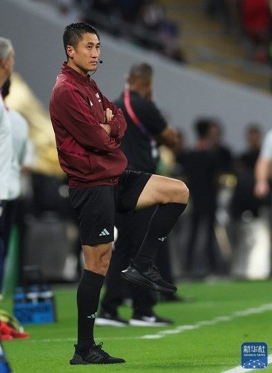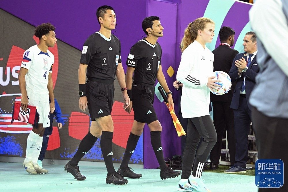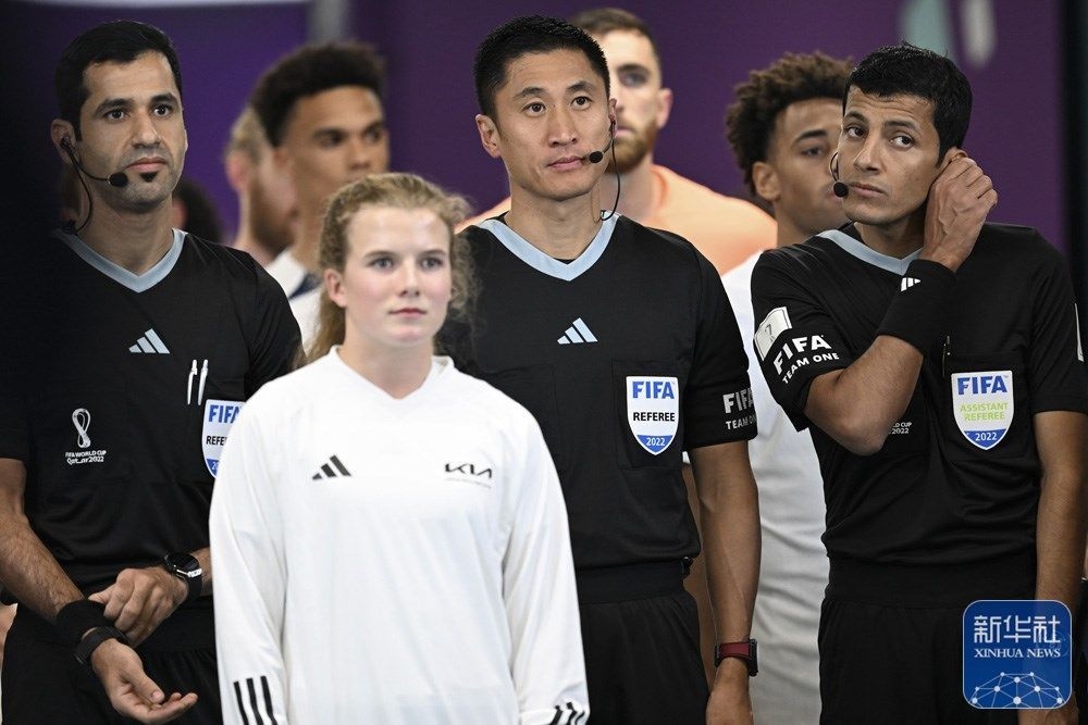 ↑中国裁判员马宁在比赛开始前。新华社记者 潘昱龙 摄