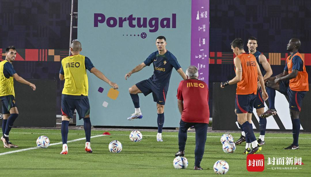 当地时间11月19日,C罗领衔的葡萄牙队在阿尔赖扬运动俱乐部进行了本次世界杯的首次训练。图据封面新闻