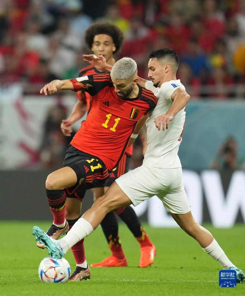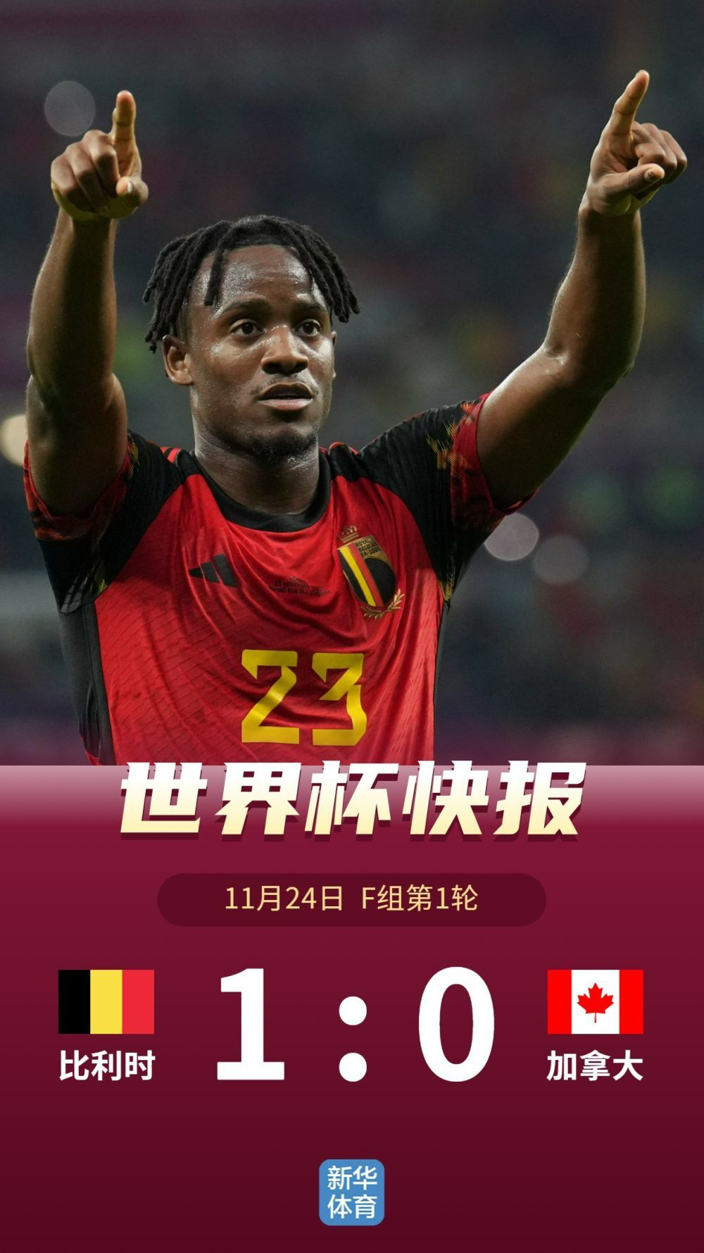 当日,在卡塔尔多哈艾哈迈德·本·阿里体育场进行的2022卡塔尔世界杯足球赛F组比赛中,比利时队以1比0战胜加拿大队。