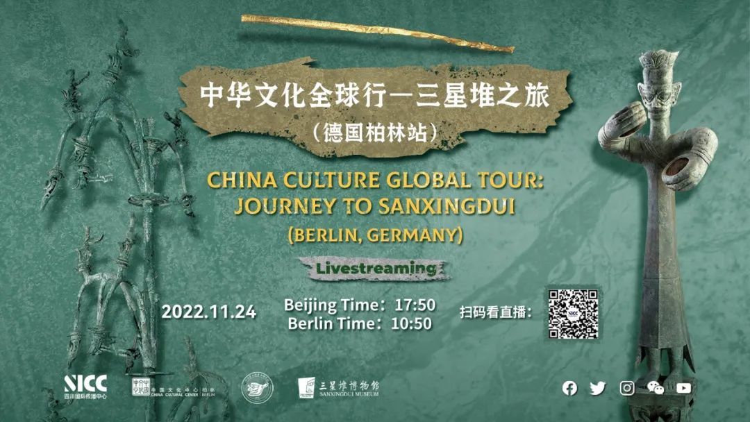 On November 24th at 17:50 Beijing time (Nov 24 at 10:50 Berlin time), Sichuan International Communication Center joined hands with overseas China Culture Centers, Sichuan Provincial Cultural Relics and Archeology Research Institute and Sanxingdui Museum to organize the "China Culture Global Tour" activity.