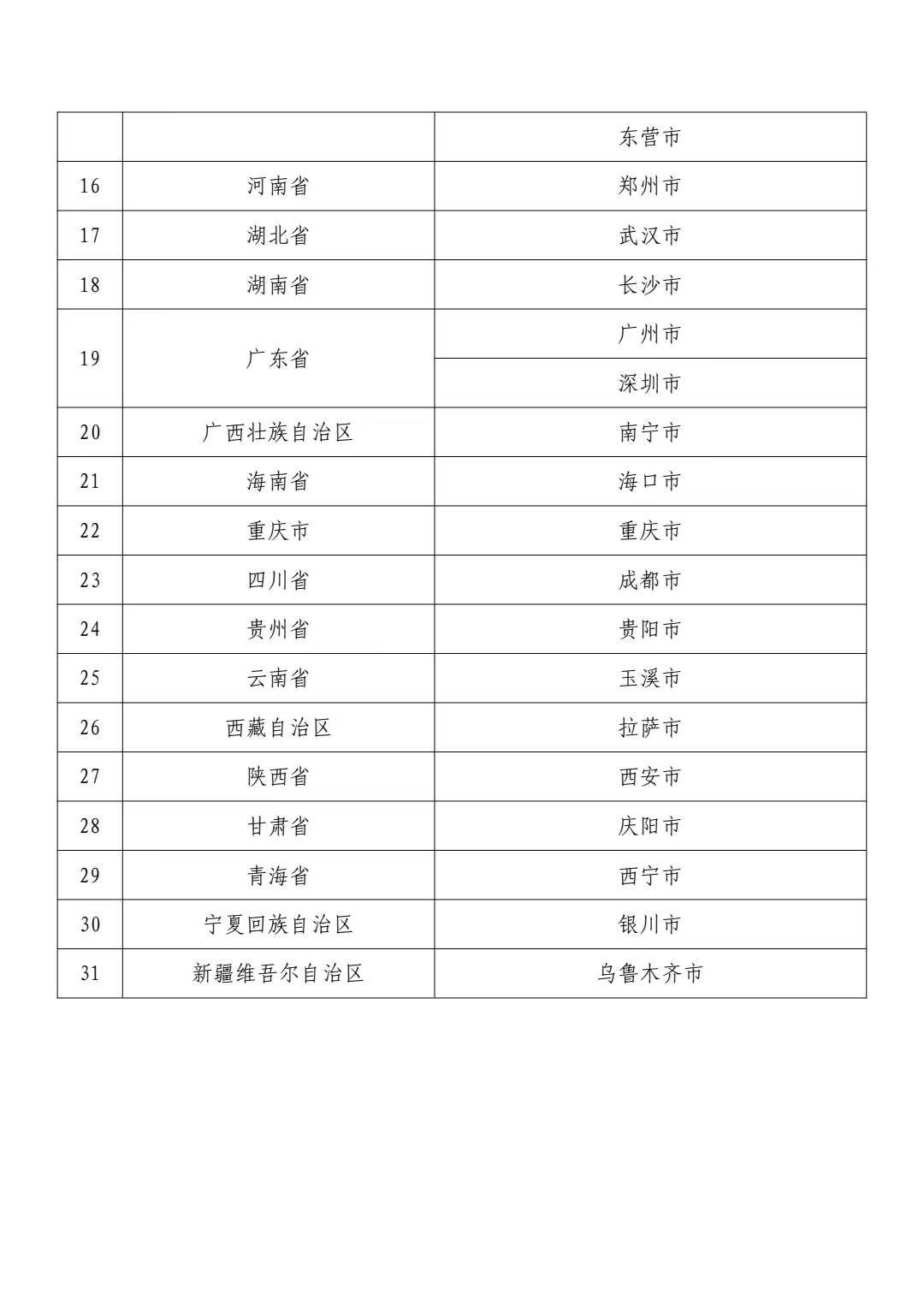 在北京、上海、广州、西安、成都等36个先行城市或地区
