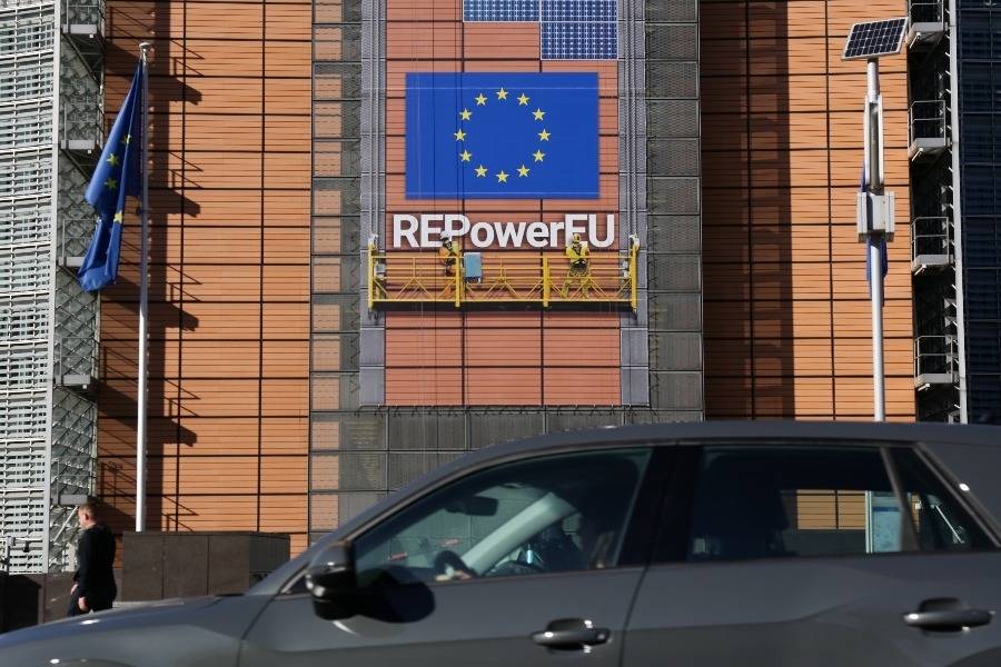 2022年10月18日,车辆经过位于比利时布鲁塞尔的欧盟委员会总部大厦。新华社记者郑焕松摄