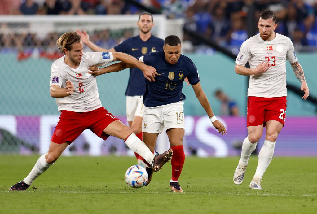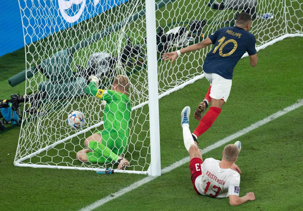 新华社多哈11月26日电(记者岳东兴、韦骅、王浩明)法国队边锋姆巴佩26日晚再度展现头号球星一锤定音的作用,他包办两球,帮助卫冕冠军2:1击败丹麦队,并成为卡塔尔世界杯第一支晋级淘汰赛的球队。