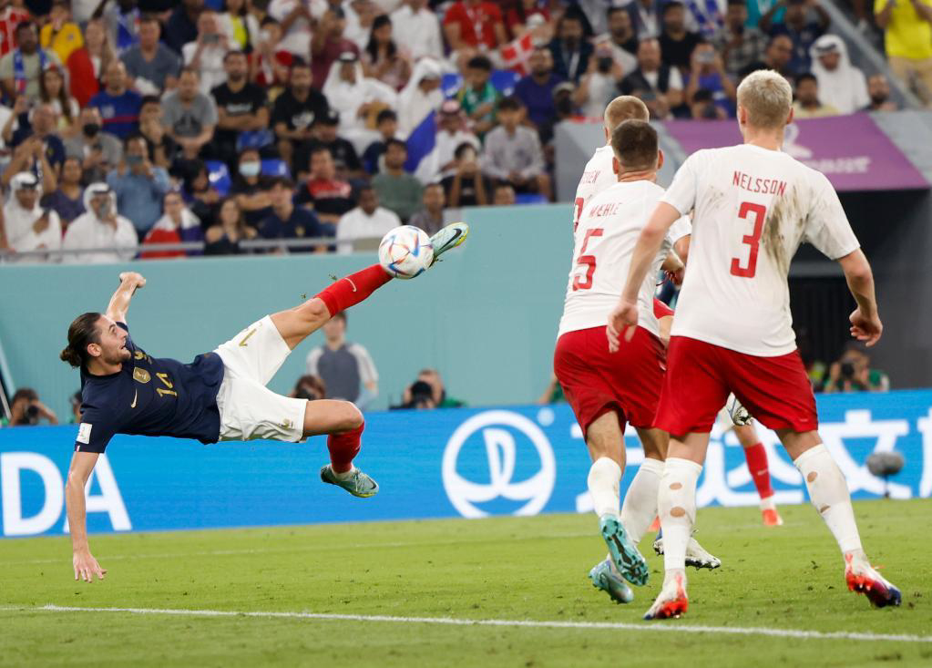 第86分钟,法国队组织核心格列兹曼斜传过顶球,将球送到远门柱,姆巴佩高高跃起,用一个不标准的射门动作将球撞进球门,以2:1锁定胜局。两连胜的法国队率先从D组出线。