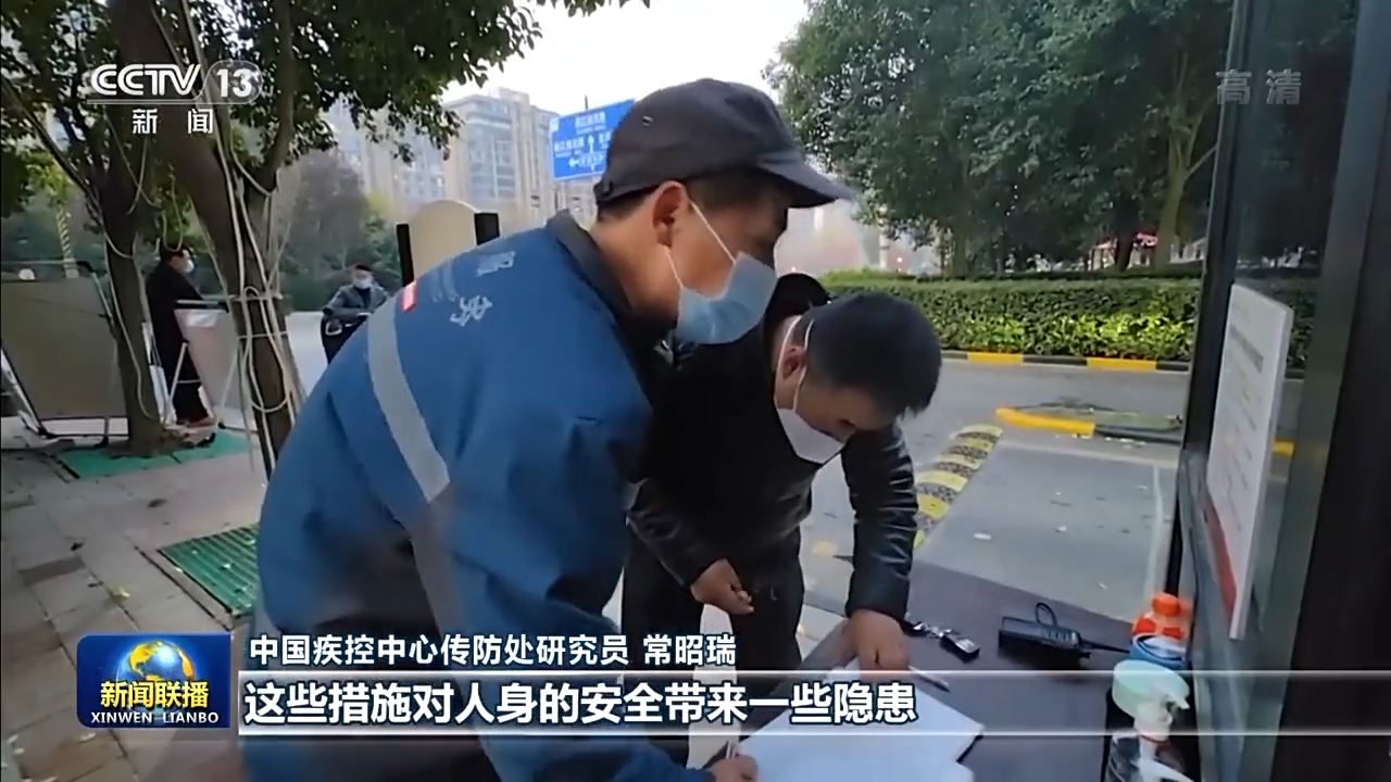 中国疾控中心传防处研究员 常昭瑞:高风险区域的区域封控,要求封闭的家庭要足不出户。我们更多的是要采取像上门磁的这种软性的管控措施来做到足不出户,而不是要采取封门、上锁,封锁消防通道等硬性的封控措施,这些措施对人身的安全带来一些隐患。