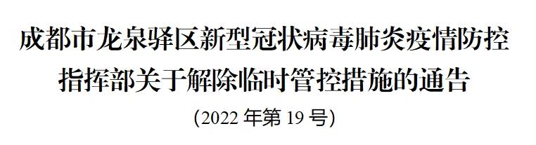 成都市龙泉驿区发布解除临时管控措施的通告;锦江、金牛、成华、青白江、双流、郫都最新通告