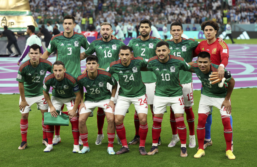 11月26日,墨西哥队首发阵容在赛前合影。新华社记者潘昱龙摄
