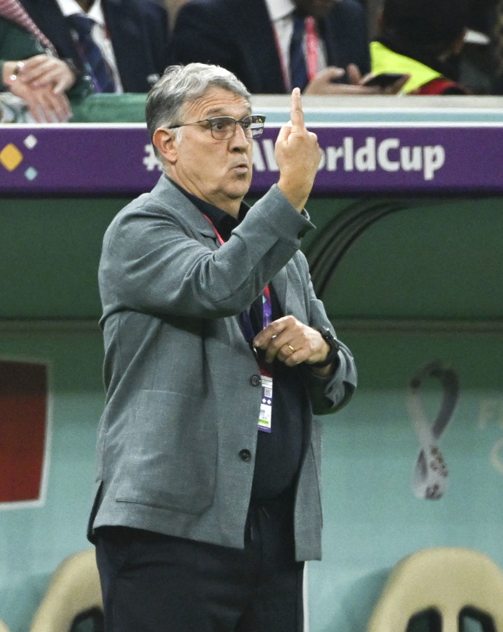11月26日,墨西哥队主教练赫拉尔多·马蒂诺在比赛中指挥。新华社记者李尕摄