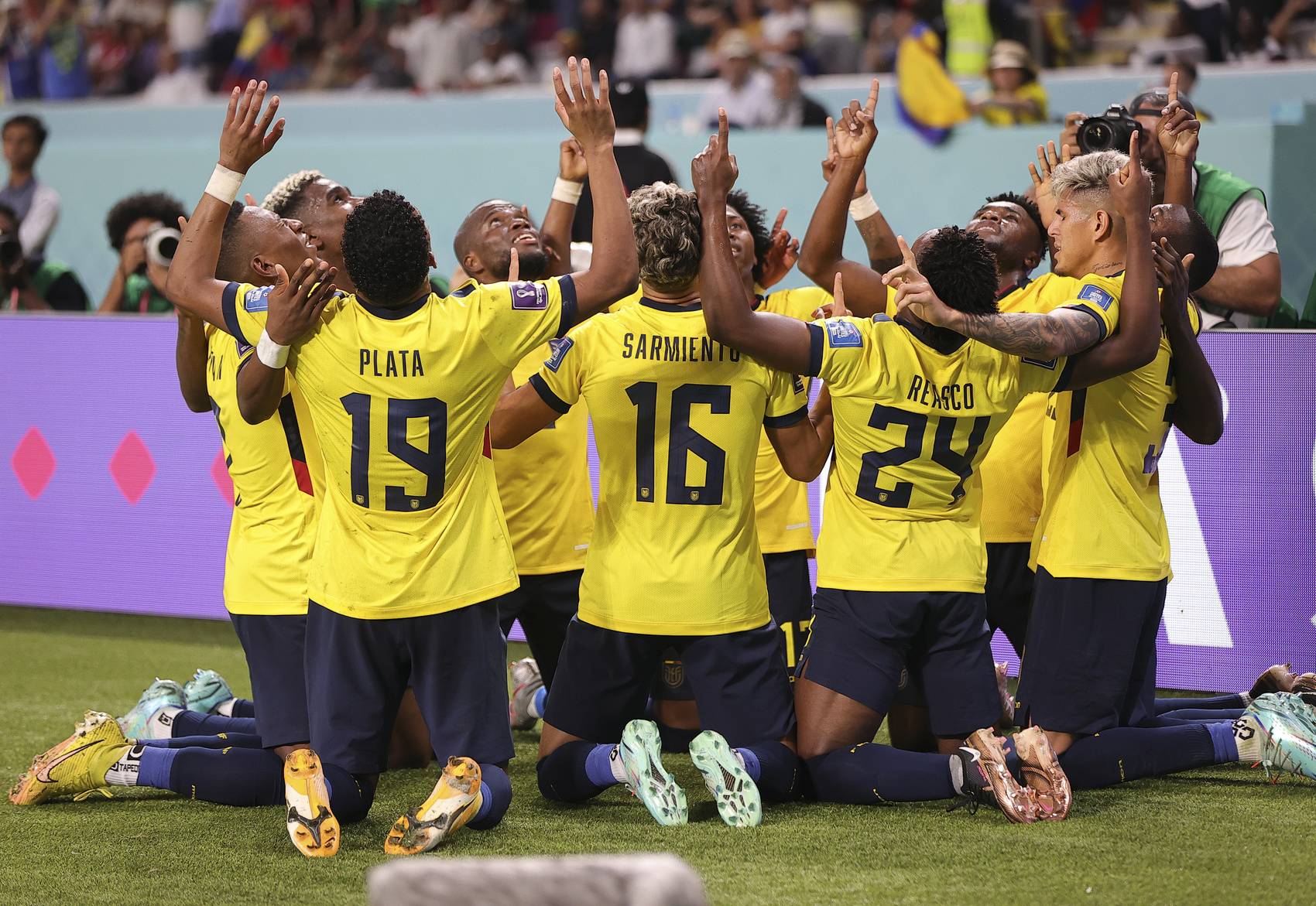 11月29日,厄瓜多尔队球员在比赛中庆祝队友凯塞多的进球。新华社记者 王东震 摄