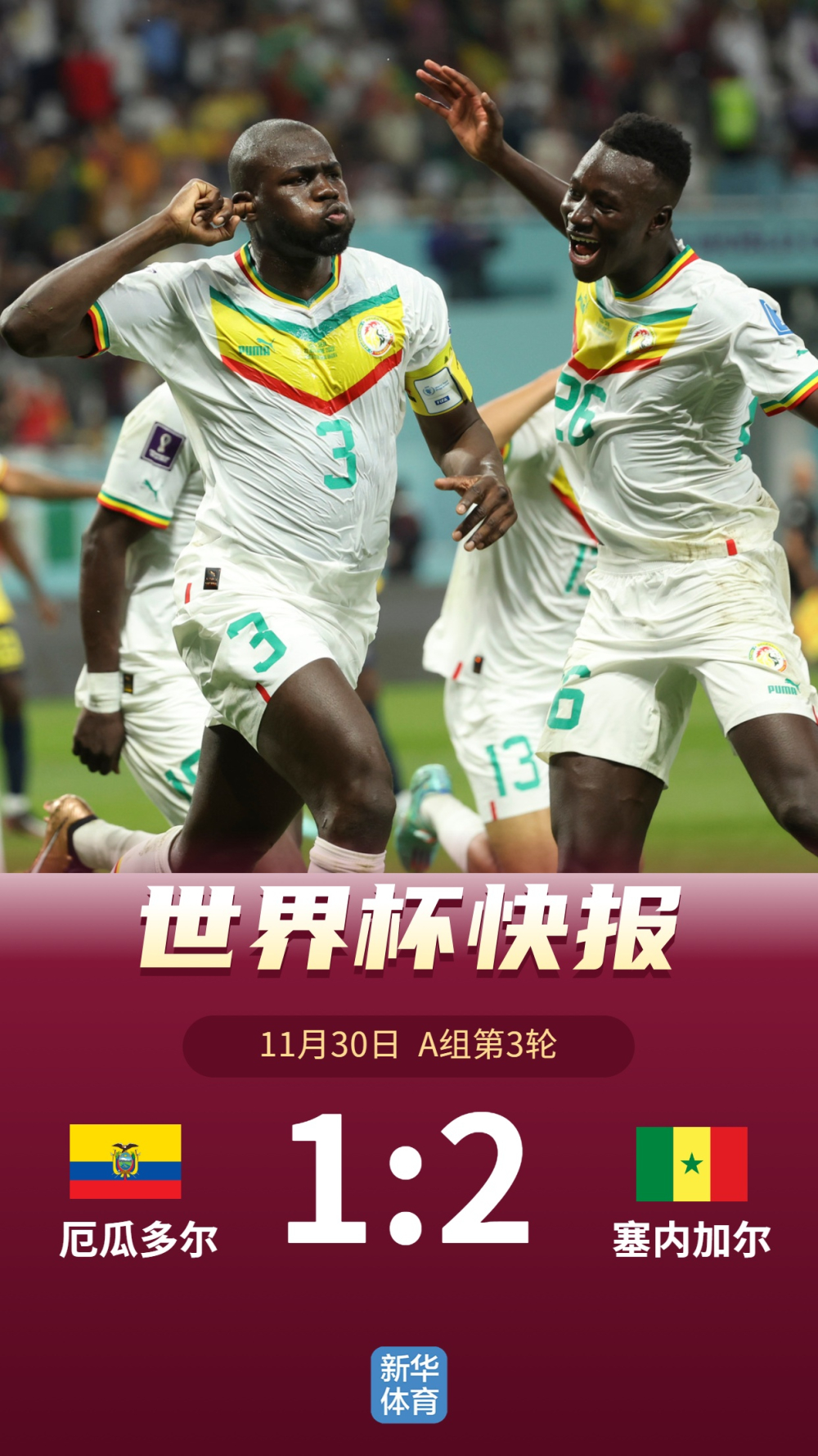 新华社多哈11月29日电(记者肖亚卓、董意行、张逸飞)29日,卡塔尔世界杯A组最后一轮比赛结束,背水一战的非洲冠军塞内加尔队2:1力克南美球队厄瓜多尔,以小组第二名的身份晋级16强。
