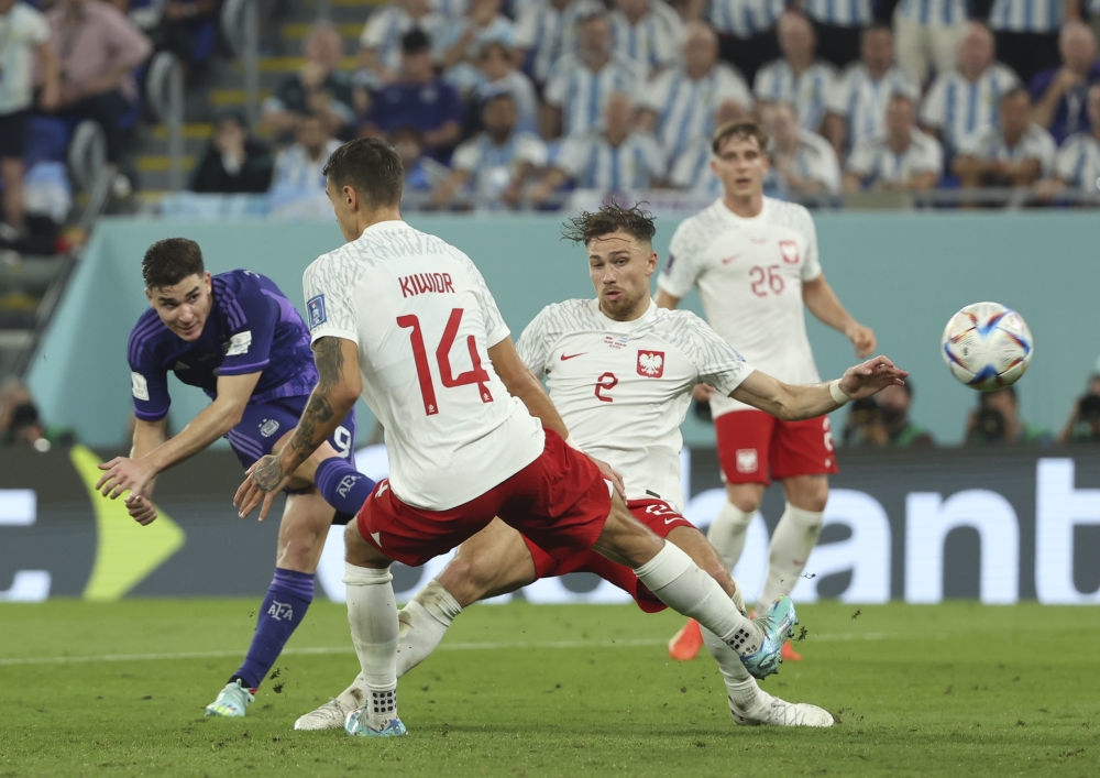 久攻不下的阿根廷队下半场仅过一分钟便打破僵局。莫利纳右路横传,麦卡利斯特直接射门,什琴斯尼扑救不及,皮球滚入网窝。领先的阿根廷队攻势不减,第67分钟,费尔南德斯送出助攻,阿尔瓦雷斯攻门得手。