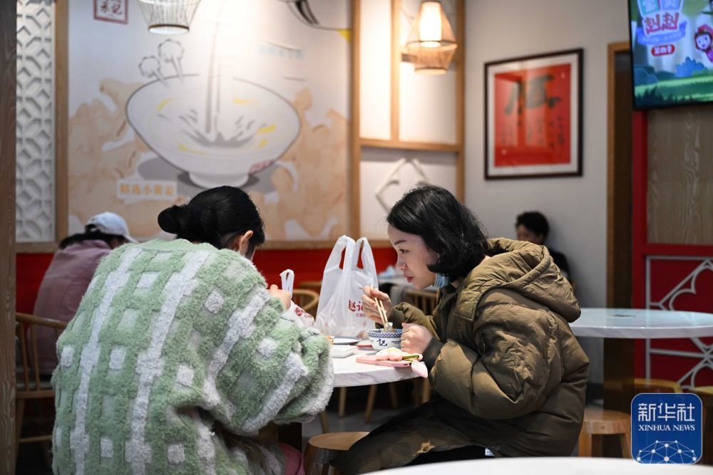 ↑12月1日,在广州市荔湾区广钢新城,居民在一家糖水店内就餐。