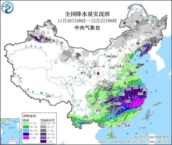 此次寒潮天气降温剧烈,部分地区降温幅度达到历史同期第一;中东部地区气温由前期明显偏高转为偏低;贵州至长江中下游一带出现今冬首场降雪和冰冻天气。