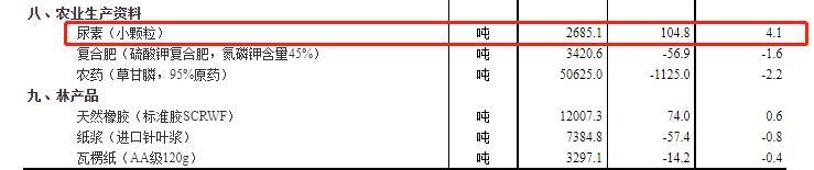 生猪(外三元)降7.4%,本期价格22.5元/千克。尿素(小颗粒)涨4.1%,本期价格2685.1元/吨。(中新经纬APP)