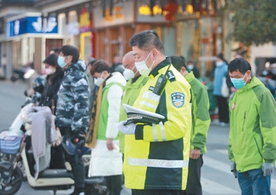 这是在新疆乌鲁木齐市街头,群众肃立默哀。 新华社记者 王 菲摄