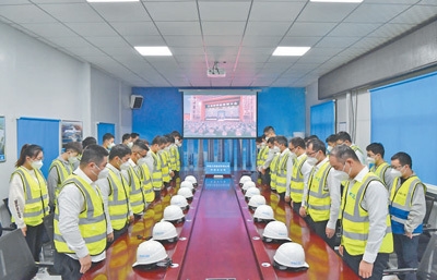 这是在河南郑州中原数字产业园(西园)项目工地,中建三局的建设者肃立默哀。新华社记者 李嘉南摄