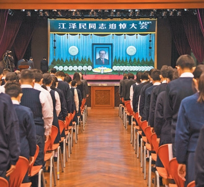 这是在江西南昌八一广场,群众收看江泽民同志追悼大会直播。新华社记者 周 密摄