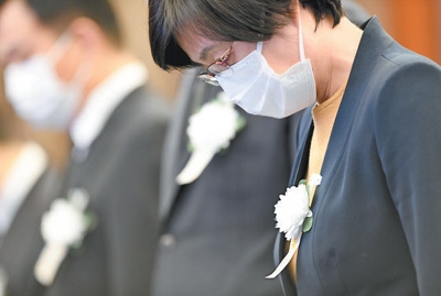 这是在上海交通大学,师生代表肃立默哀。新华社记者 刘 颖摄