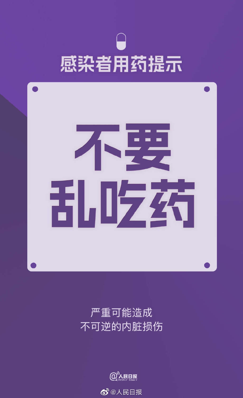 感染者用药提示:①不要乱吃药:严重可能造成不可逆的内脏损伤;②不要多种药混着吃:是药都有副作用,相互作用或增加不良反应;③不轻信“朋友圈药方”:网传药方不一定靠谱;④不盲目囤药:不科学也没必要;⑤儿童用药算剂量;⑥不恐慌,不大意↓↓↓科学防疫,做好防护!