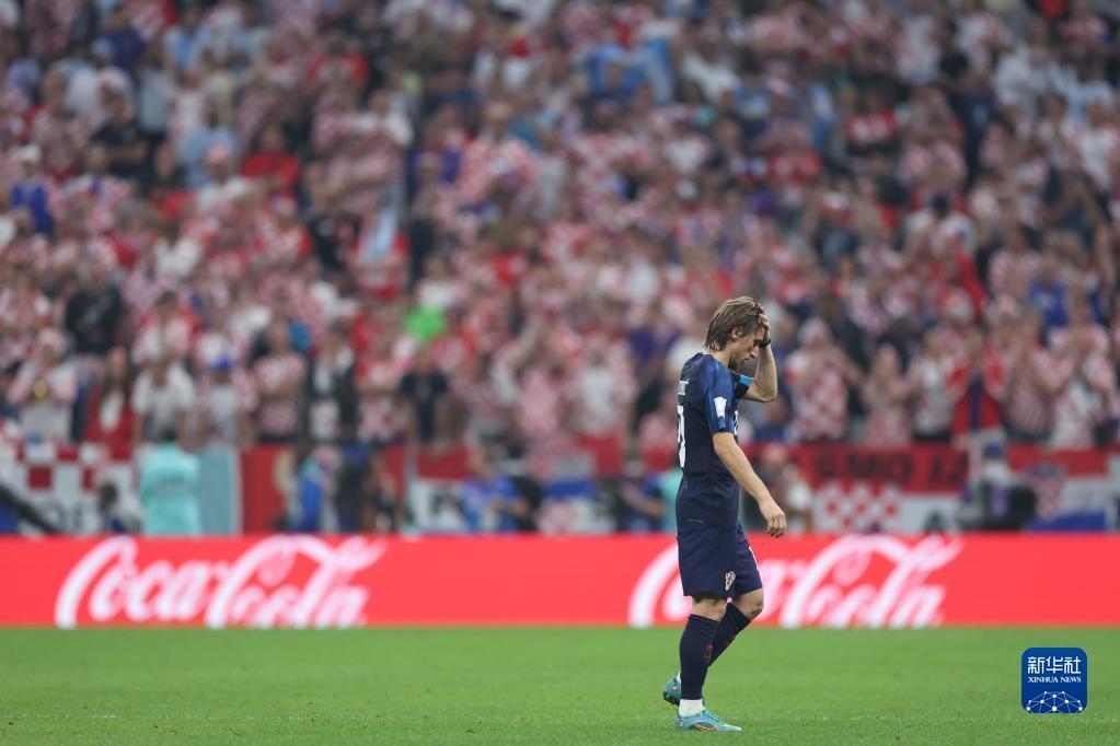 12月13日,克罗地亚队球员莫德里奇在比赛中被替换下场。新华社记者 曹灿 摄