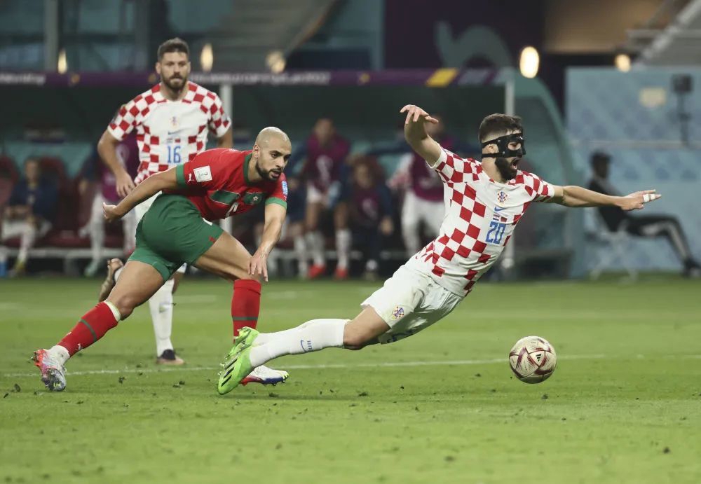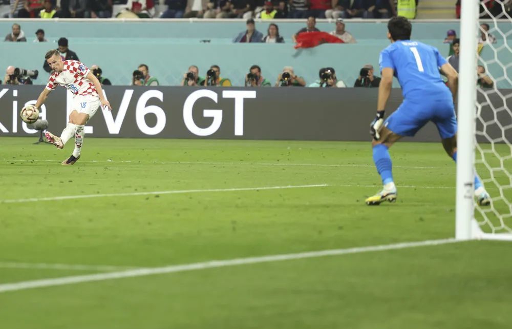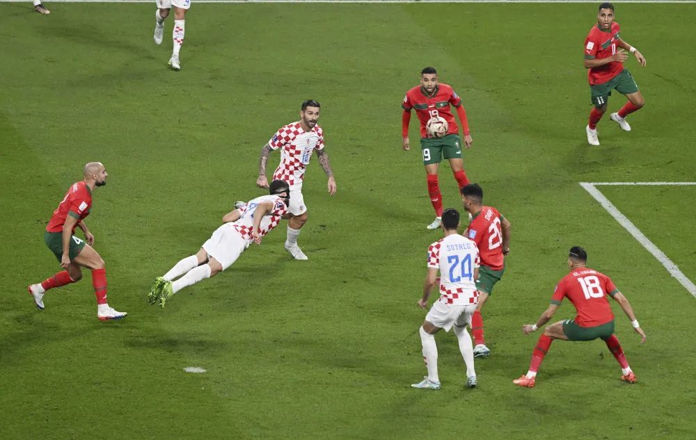 莫德里奇第24分钟在禁区前沿左脚远射,摩洛哥队门将布努将球扑出并赶在克罗地亚队球员补射前将球捅出危险区域。第42分钟,克罗地亚队再度领先,奥尔西奇禁区左侧一记漂亮的弧线球击中门柱后入网。