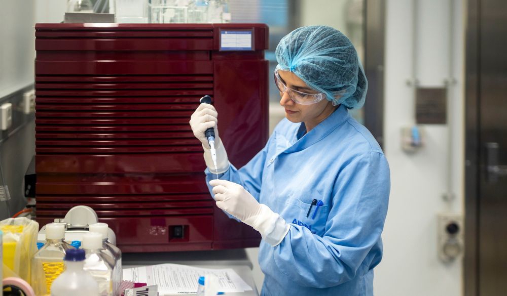 这张2020年4月1日拍摄的照片显示,科研人员在位于澳大利亚布里斯班的昆士兰大学实验室进行疫苗研制工作。(新华社发)