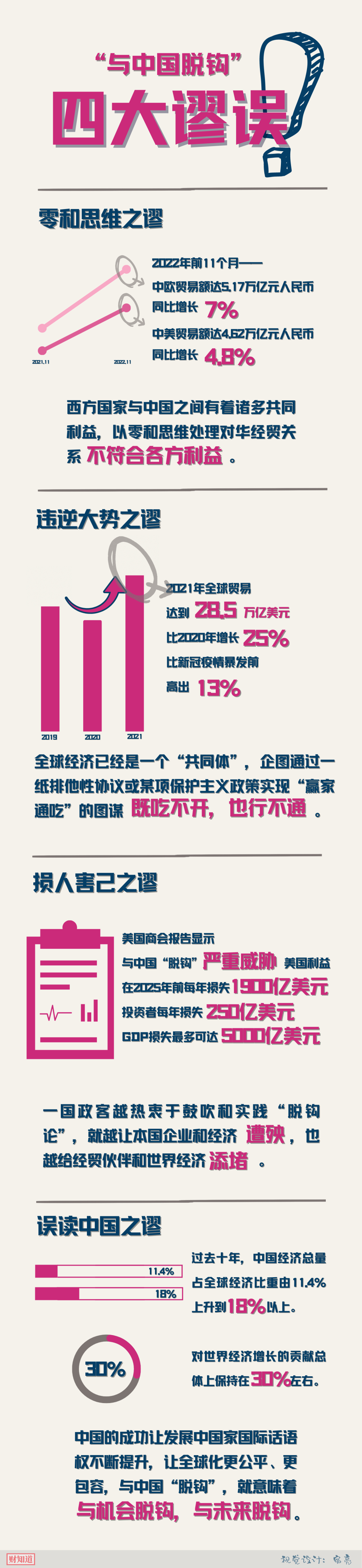 数十年来,中国经济发展繁荣的过程,既是中外合作共赢的过程,也是“中国崩溃论”“中国威胁论”等各类西方谬论不断破产的过程。与各类过往谬论一样,“脱钩论”不过是反映中国经济和中外关系真实情况的又一“反向指标”。