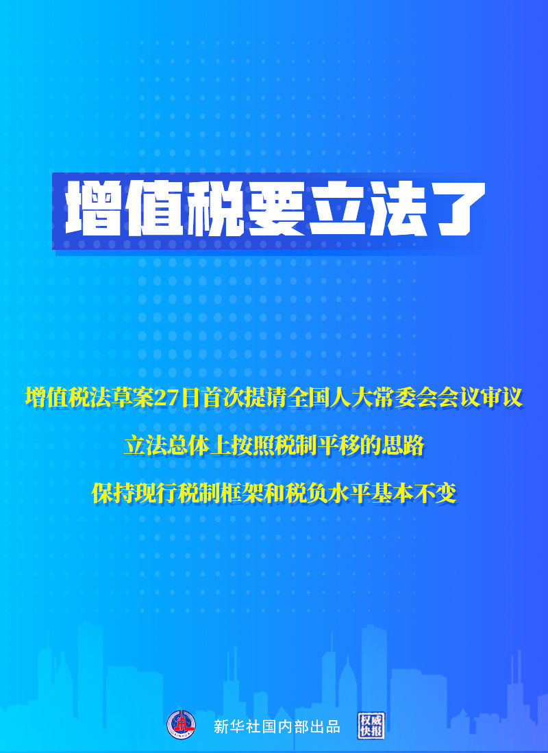 增值税法草案提请十三届全国人大常委会第三十八次会议首次审议