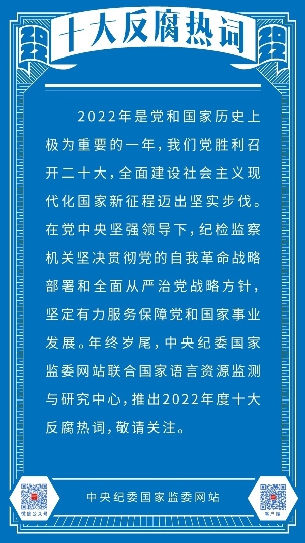 逃逸式辞职、风腐同查...2022年度十大反腐热词发布