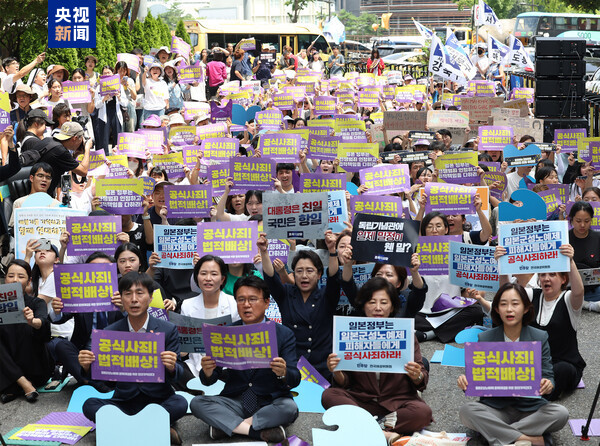 当天中午,“正义记忆连带”团体在日本驻韩国大使馆前举行1661次定期集会,敦促日本政府向“慰安妇”受害者正式道歉并予以法律赔偿,要求韩国政府恢复“慰安妇”受害者的名誉等。数百名首尔市民、学生,以及最大在野党共同民主党全国女性委员长李在祯等政界人士也参加了当天的集会。