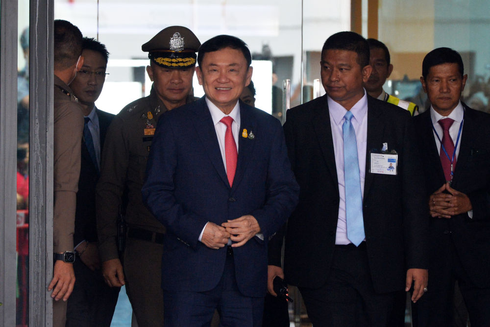 2023年8月22日,泰国前总理他信(中)抵达曼谷廊曼机场。新华社发(拉亨摄)