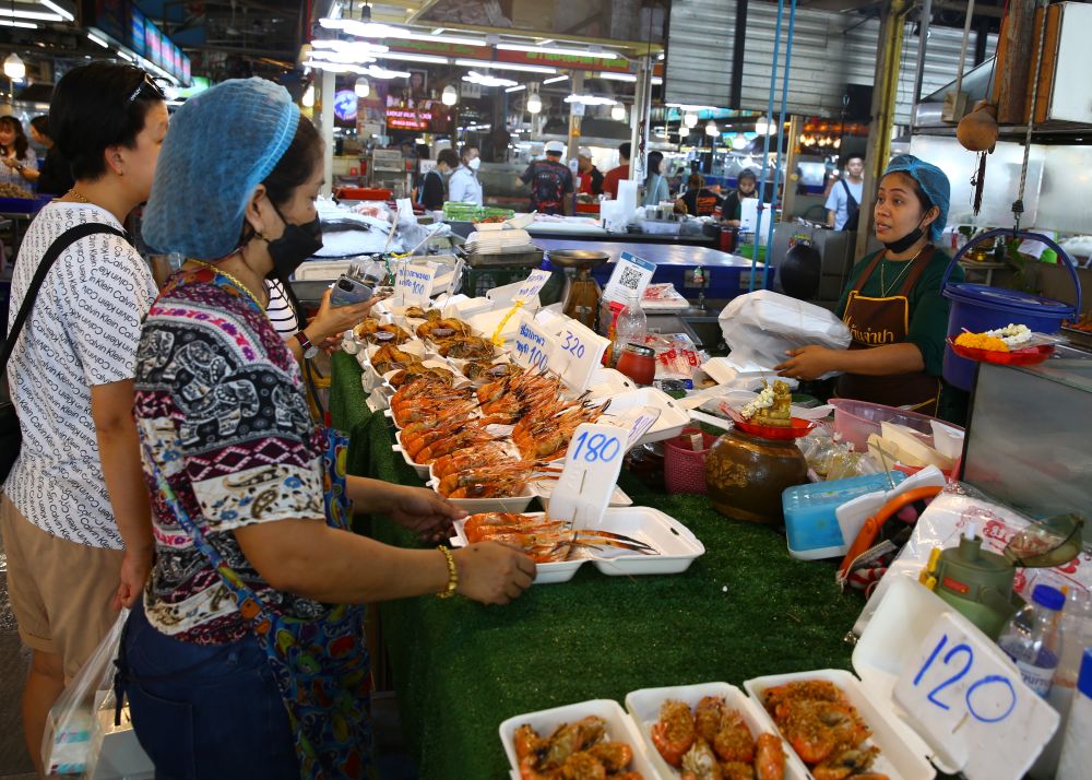 6月22日,人们在位于泰国曼谷的吞武里海鲜市场选购海鲜。新华社记者孙玮彤摄